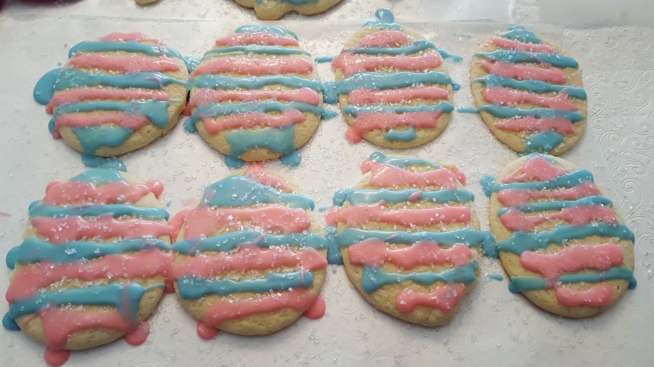 Cream together Crisco, sugar and eggs. Add baking soda, baking powder and lemon and beat well. Add flour and milk alternately. Dough should be soft, but should be able to be patted out on floured pastry board–not too thin, these are old fashioned cookies. Cut out cookies with cookie cutter and sprinkle with sugar and bake at 350 degrees on ungreased cookie sheet until bottoms are golden brown.